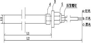 4、例如WZC-200-2:表示Cu50傳感器,螺紋G1/2,插入深度150mm長,總長550mm。直徑12mm。